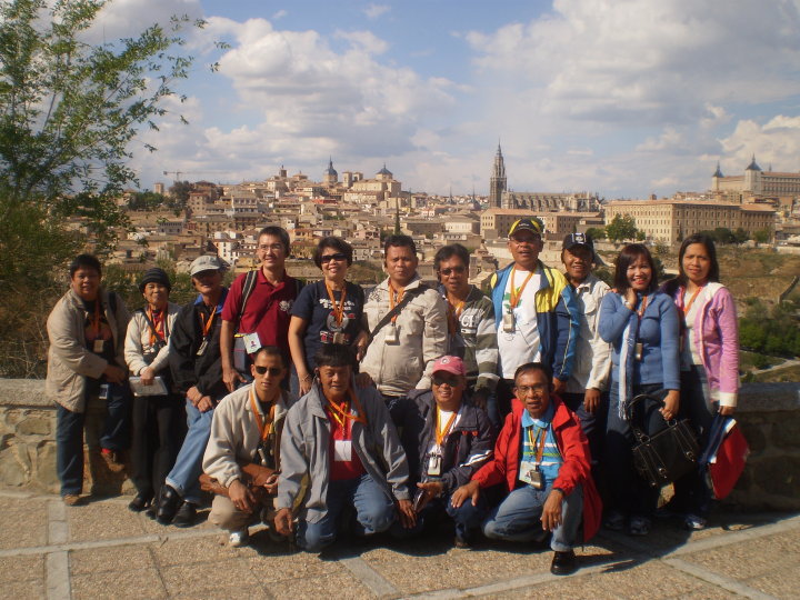 A pose for posterity at the city of Toledo, which is the capital of the Autonomous Region of Castella La Mancha, Spain by the 15-man Philippine Delegation to the Study